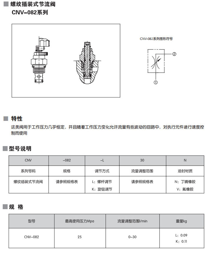CNV-082-L30N,CNV-082-L30V,CNV-082-K30N,CNV-082-K30V,螺紋插裝式節(jié)流閥