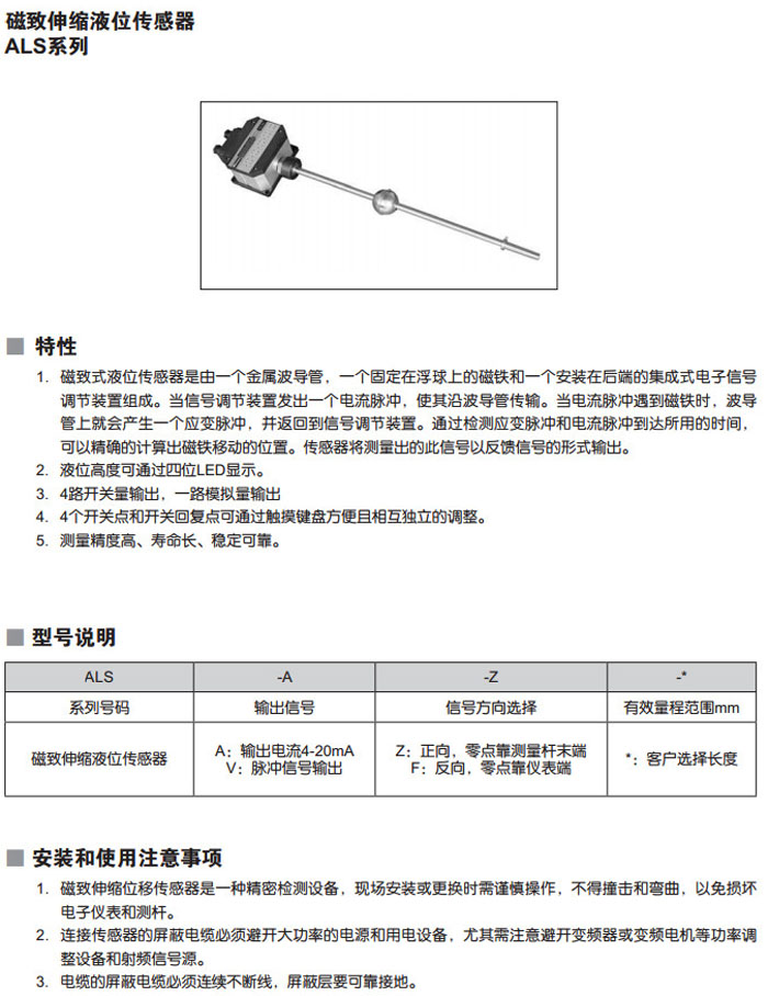 ALS-A-Z,ALS-A-F,ALS-A-Z,ALS-A-F,磁致伸縮液位傳感器