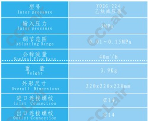 產(chǎn)品: 瀏覽次數(shù):556YQEG-224,乙炔減壓器,CCLair