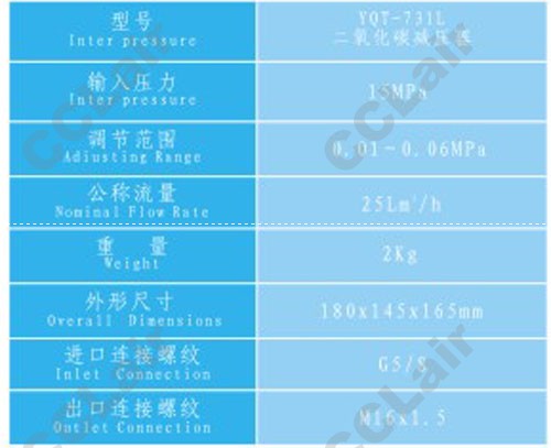 產(chǎn)品: 瀏覽次數(shù):596YQT-731L,二氧化碳減壓器,CCLair