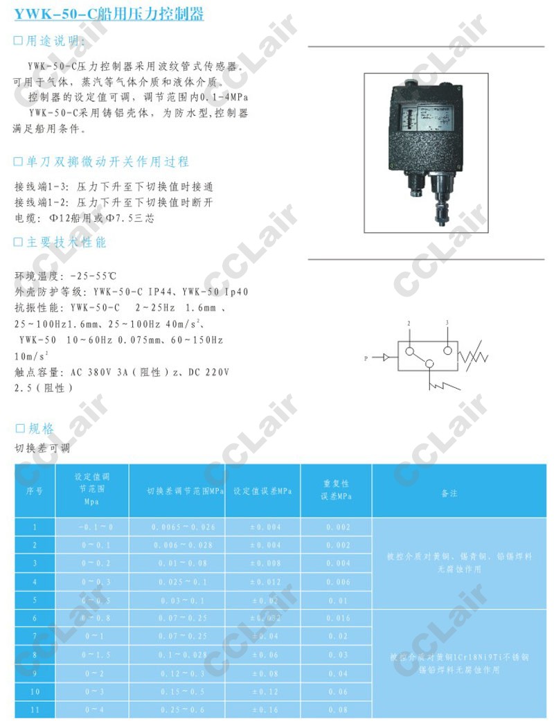 型號: YWK-50-C,船用壓力控制器,CCLair
