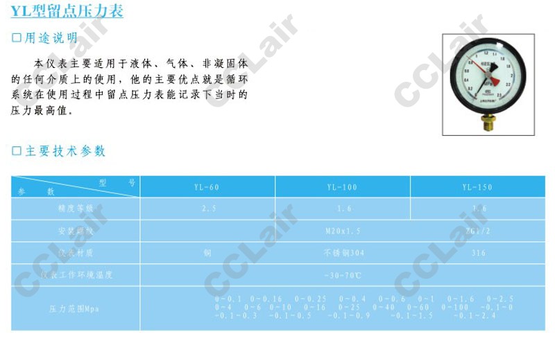 YL-60,YL-100,YL-150,留點壓力表,CCLair