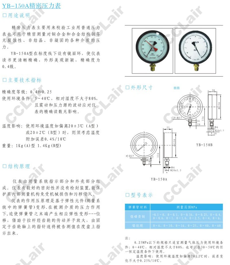 產(chǎn)品: 瀏覽次數(shù):863YB-150A,精密壓力表,CCLair