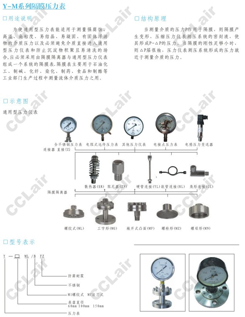 Y-60ML/BFZ,Y-100ML/BFZ,Y-150ML/BFZ,隔膜壓力表,CCLair
