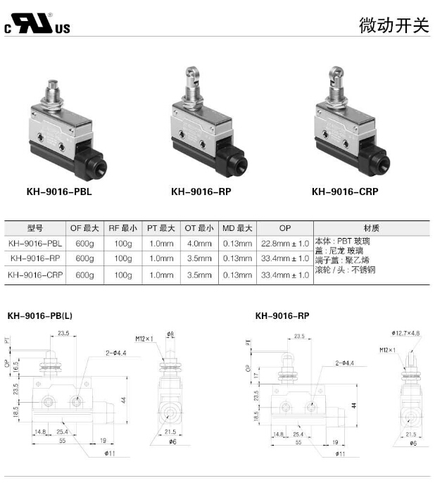 KH-9016-PBL,KH-9016-RP,KH-9016-CRP,KH-9016-HL,KH-9016-HLL,KH-9016-HRL,KH-9016-HRS,Koino微動開關(guān)