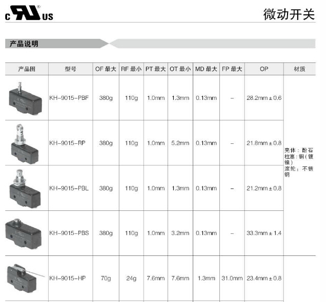 詳細(xì)信息 KH-9015-PBF,KH-9015-RP,KH-9015-PBL,KH-9015-PBS,KH-9015-HP,KH-9015-CRP,KH-9015-HL,Koino微動開關(guān)