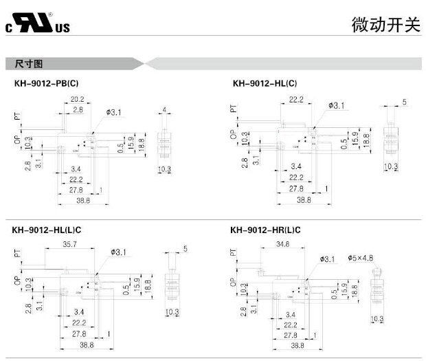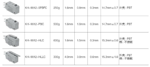 KH-9012-5,KH-9012,KH-9012-5PBC,KH-9012-5HLC,KH-9012-HLC,KH-9012-HRLC,KH-9012-HRMC,Koino微動(dòng)開關(guān)