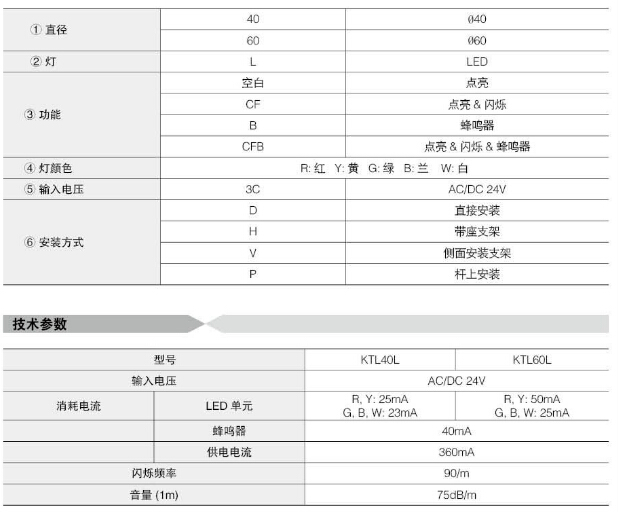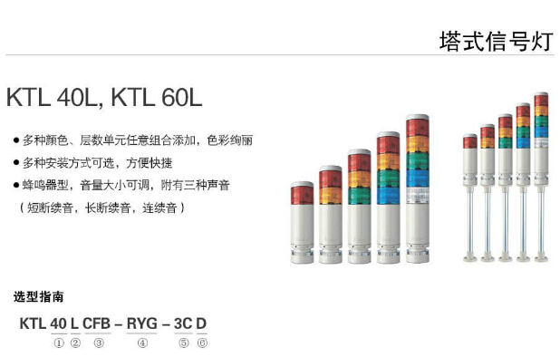 KTL40L,KTL60L,KTL40LCF-R-3CD,KTL40LB-R-3CD,KTL60LCFB-R-3CP,KTL40LCFB-R-3CD,Koino 塔式信號燈