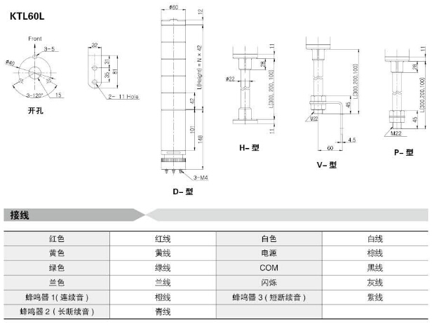 型號: KTL40L,KTL60L,KTL40LCF-R-3CD,KTL40LB-R-3CD,KTL60LCFB-R-3CP,KTL40LCFB-R-3CD,Koino 塔式信號燈
