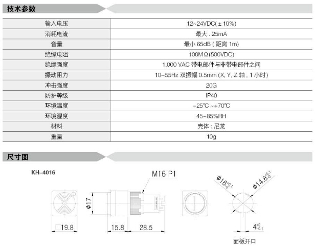 詳細(xì)信息 KH-4016,KH-4016-D,KH-4016-DS,KH-4016-DR,KH-4016-F,KH-4016-FS,KH-4016-FR,KH-4016-S,KH-4016-R,Koino直流蜂鳴器