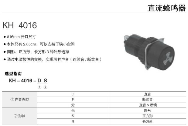 KH-4016,KH-4016-D,KH-4016-DS,KH-4016-DR,KH-4016-F,KH-4016-FS,KH-4016-FR,KH-4016-S,KH-4016-R,Koino直流蜂鳴器