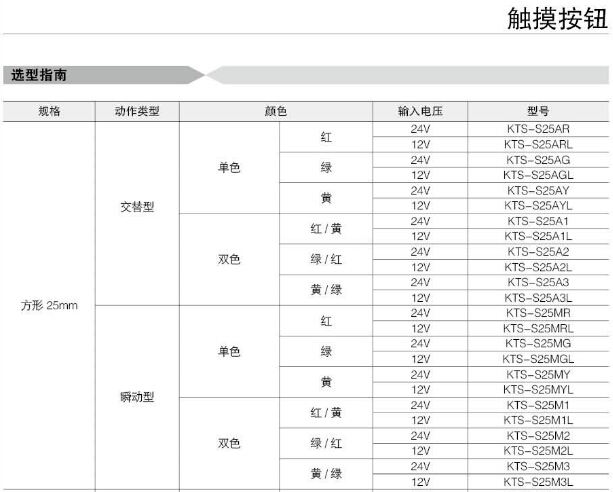 瀏覽次數(shù):614KTS-S25,KTS-S40,KTS-S25AR,KTS-S40AR,KTS-S40M3L,KTS-S25M3L,KTS-S25A2,KTS-S40A3L,Koino觸摸按鈕 |