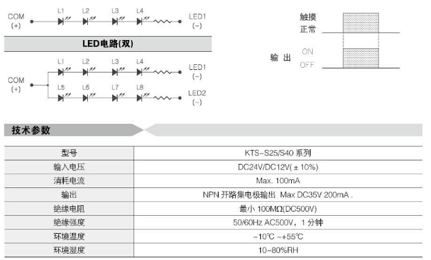 KTS-S25,KTS-S40,KTS-S25AR,KTS-S40AR,KTS-S40M3L,KTS-S25M3L,KTS-S25A2,KTS-S40A3L,Koino觸摸按鈕