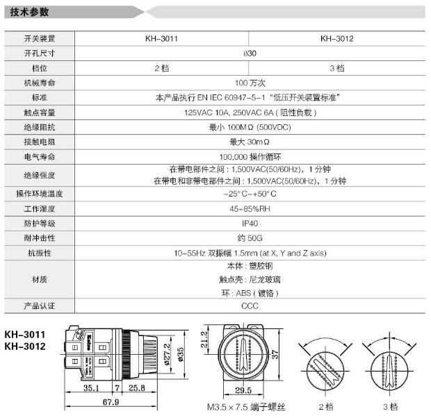 KH-3011,KH-3012,Koino Φ30重負荷開關