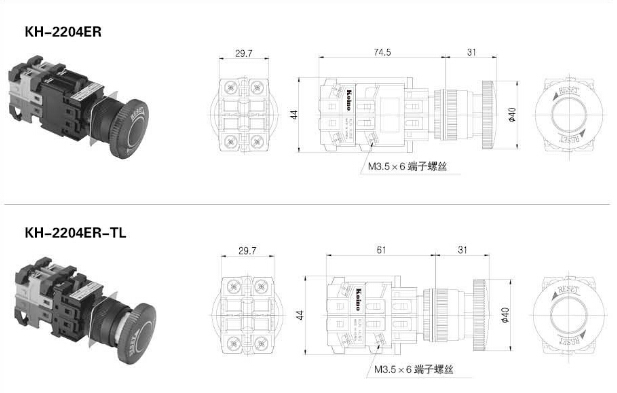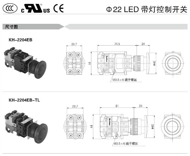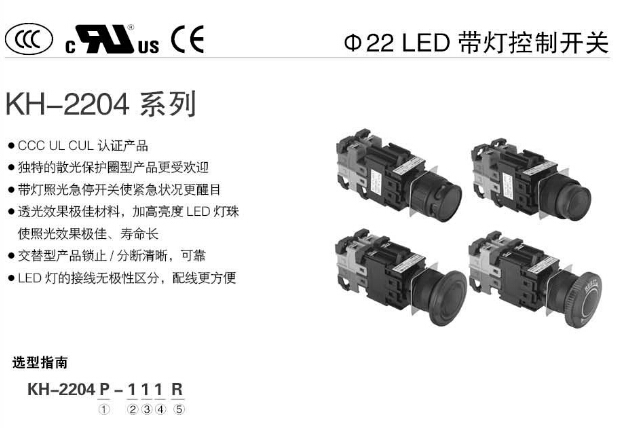 KH-2204,KH-2204-TL,KH-2204P,KH-2204P-TL,KH-2204EB,KH-2204EB-TL,KH-2204ER,KH-2204ER-TL,Koino Φ22帶燈控制開(kāi)
