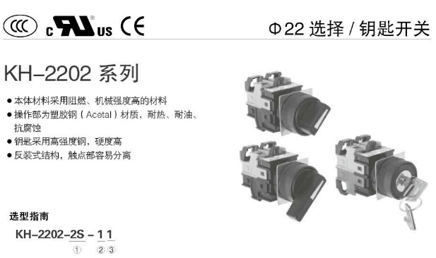 KH-2202-2S,KH-2202-2AS,KH-2202-2L,KH-2202-2AL,KH-2202-3S,KH-2202-3L,KH-2202-3RL,KoinoΦ22選擇開關(guān)