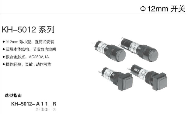 您當(dāng)前的位置:首頁(yè) » 產(chǎn)品&解決方案 » KH-5012-C00,KH-5012-C11,KH-5012-C21,KH-5012-A00,KH-5012-A11,KH-5012-A21,Koino Φ12mm開關(guān)