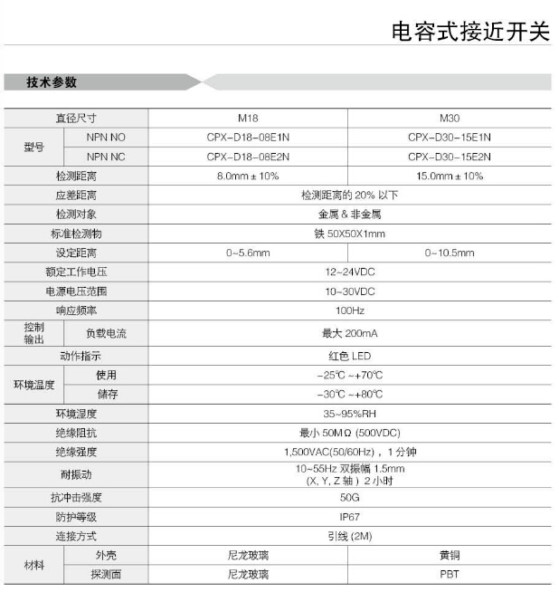 CPX-D18-08E1N,CPX-D30-15E1N,CPX-D18-08E2N,CPX-D30-15E2N,Koino電容式接近開關(guān)
