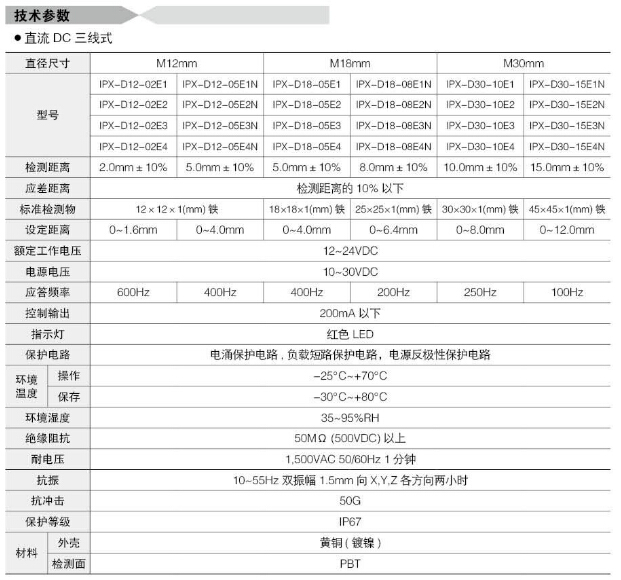 IPX-2D30-15A1N,IPX-A12-02A2W,IPX-A18-05A2W,IPX-A30-10A2W,IPX-2D18-08A2N,Koino圓柱形接近開關(guān) |