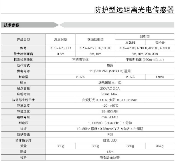 KPS-AP500,KPS-AP1000,KPS-AP2000,KPS-AP3000,KPS-AP500T/R,KPS-AP1000T/R,KPS-AP50DR,Koino光電傳感器
