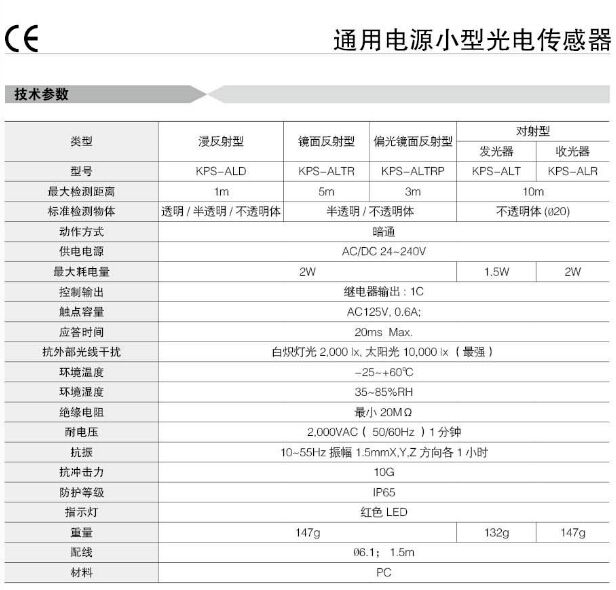 詳細(xì)信息 KPS-ALT,KPS-ALD,KPS-ALTR,KPS-ALTBR,Koino光電傳感器