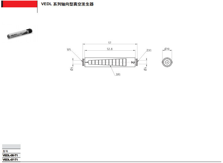 詳細信息 VEDL-05-T1,VEDL-07-T1,camozzi軸向型真空發(fā)生器