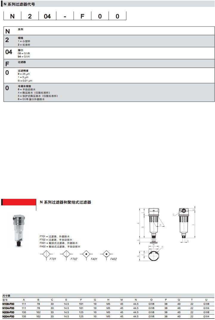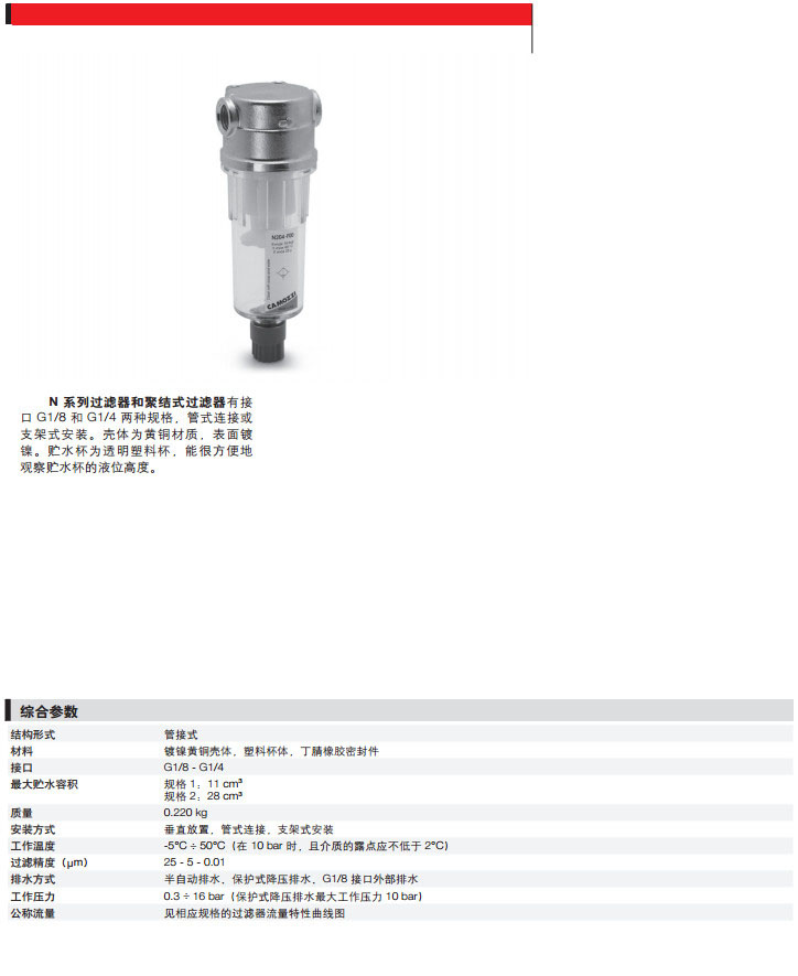 N108-F00,N104-F04,N208-F05,N204-F08,camozzi過(guò)濾器和聚結(jié)式過(guò)濾器