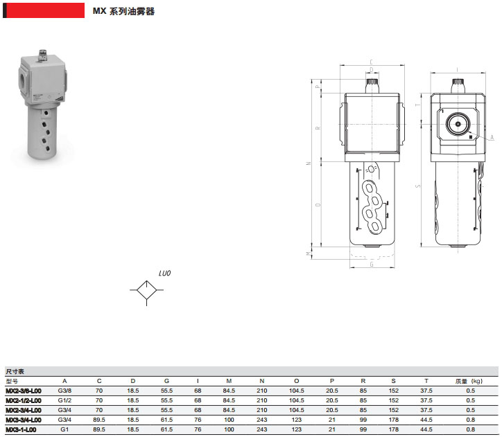 MX2-3/8-L00,MX2-1/2-L00,MX2-3/4-L00,MX3-3/4-L00,camozzi油霧器