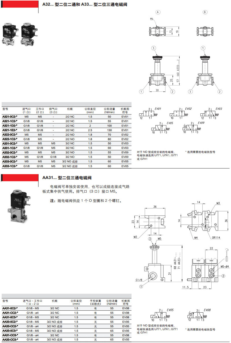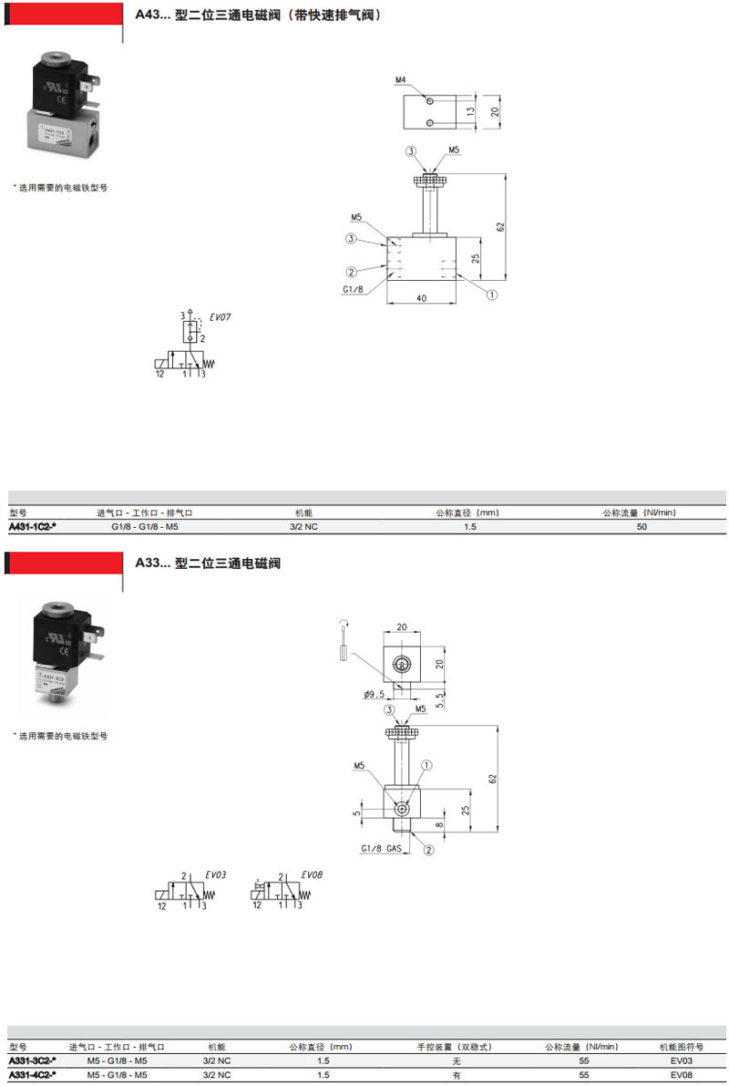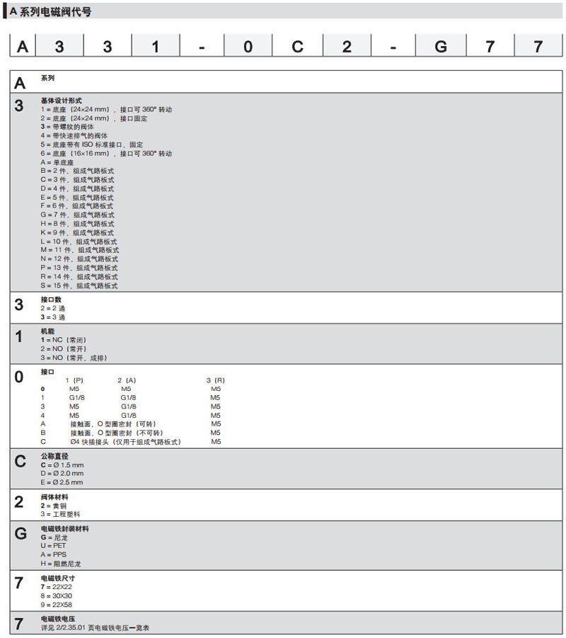 A121-0C2-G77,A221-0C2-G87,A322-0C3-G97,A333-0E3camozzi直動式電磁閥
