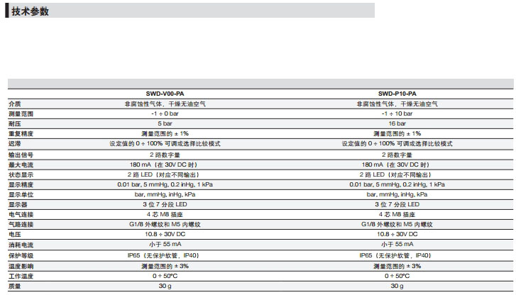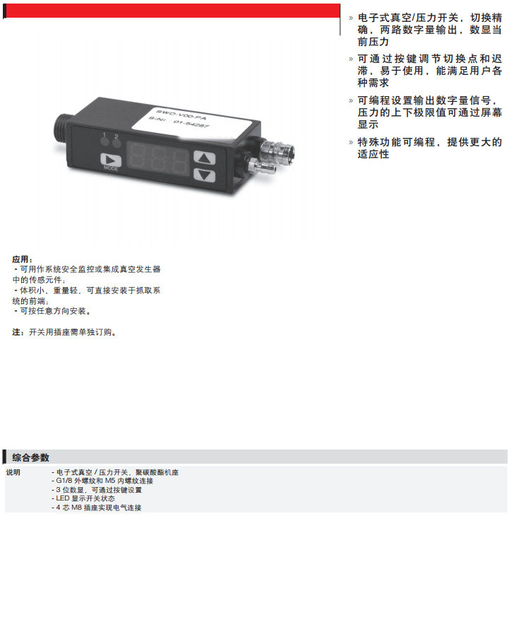 詳細信息 SWD-V00-PA,SWD-P10-PA,camozzi壓力開關(guān)