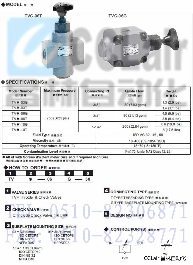 TVC-03G,TVC-03T,TVC-06G,TVC-06T,TVC-10G,TVC-10T,單向節(jié)流閥,