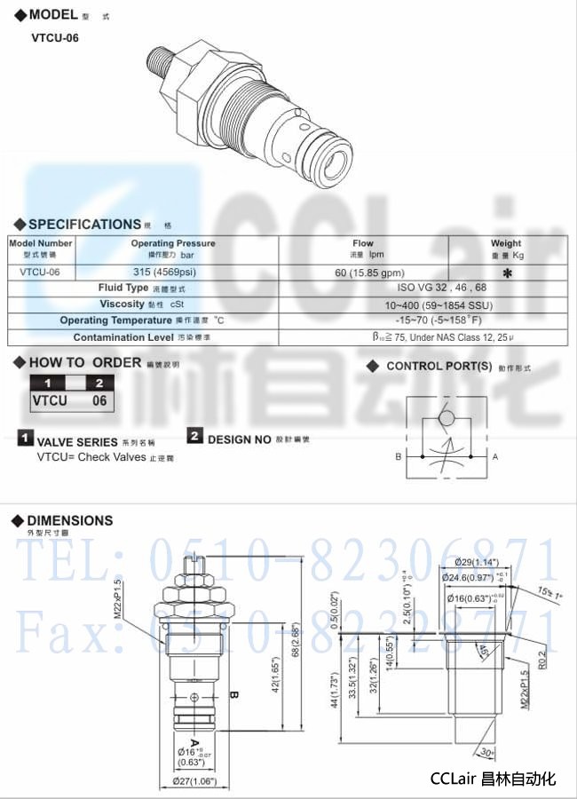 產(chǎn)品: 瀏覽次數(shù):569VTCU-06,插入式止逆閥,