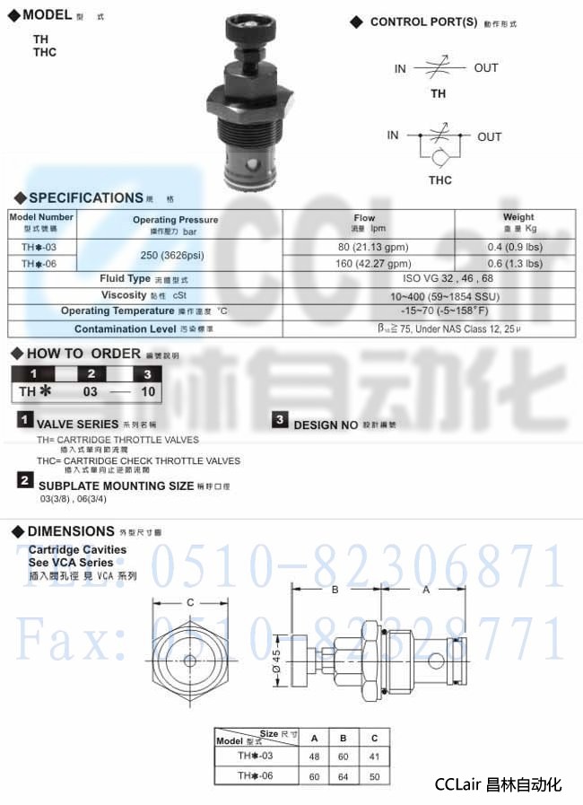 TH-03,TH-06,THC-03,THC-06,插入式單向節(jié)流閥,