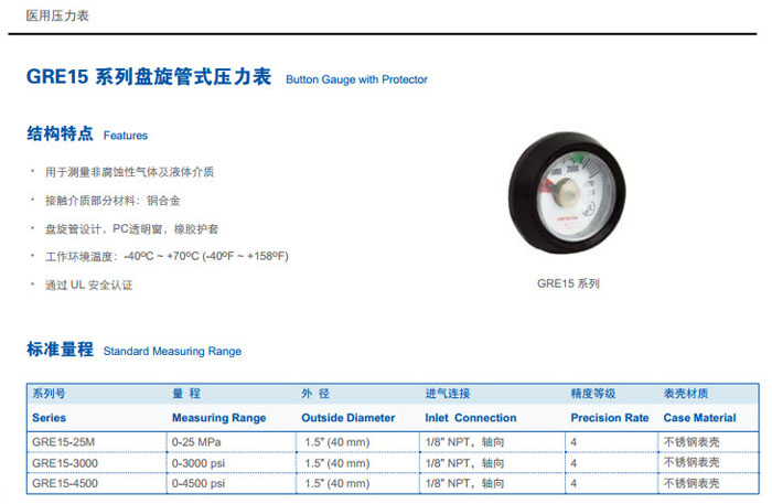GRE15-25M,GRE15-3000,GRE15-4500,盤旋管式壓力表
