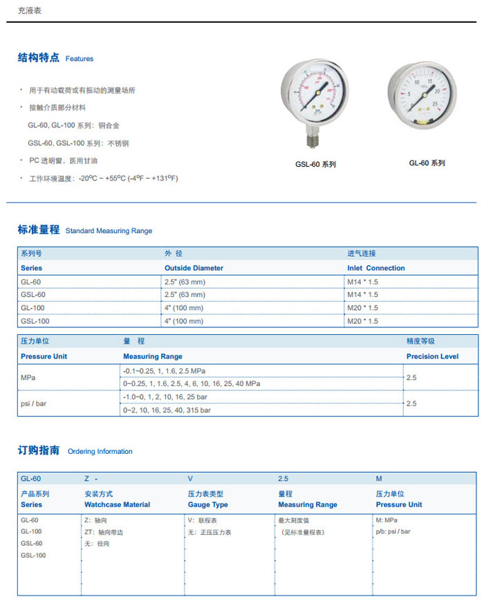 首頁 > 產(chǎn)品&解決方案 > GL-60,GL-100,GSL-60,GSL-100,GL-60Z-V2.5M,GL-100Z-V2.5M,GSL-60-2.5M,充液表