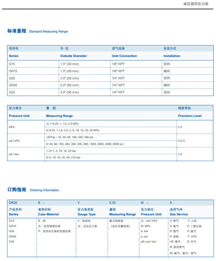 首頁 > 產(chǎn)品&解決方案 > G15,GR15,G20,GR20,G25,G15B-V0.25M,GR15B-V2.5M,G20P-2.5M,GR20P-2.5M,G25P-2.5M,減壓器用壓力表