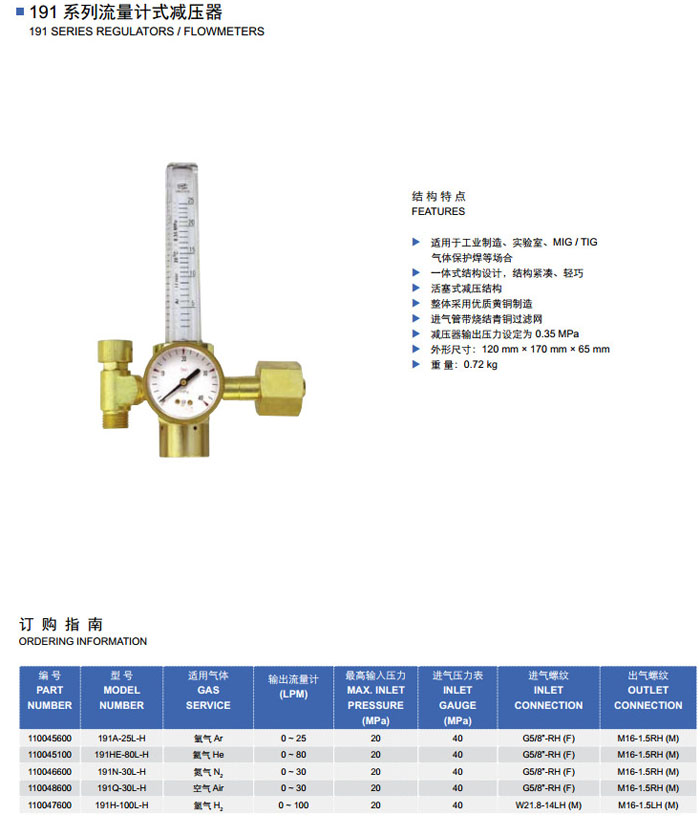 191A-25L-H,191HE-80L-H,191N-30L-H,191Q-30L-H,191H-100L-H,流量計式減壓器 詳細信息 191A-25L-H,191HE-80L-H,191N-30L-H,191Q-30L-H,191H-100L-H,流量計式減壓器