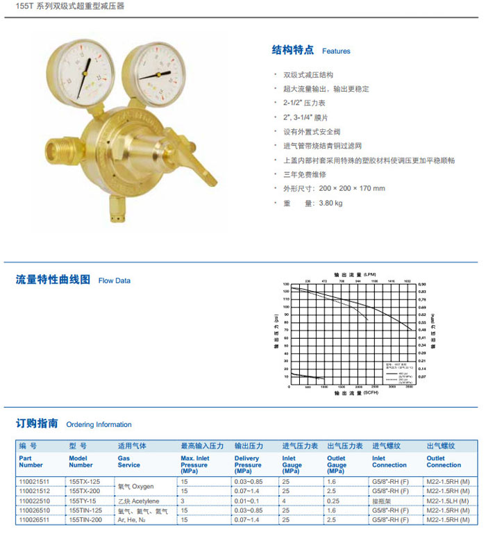 155TX-125,155TX-200,155TY-15,155TIN-125,155TIN-200,雙級式超重型減壓器