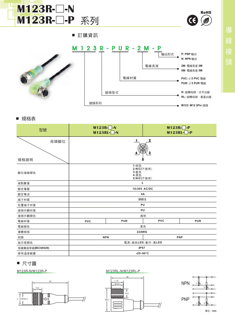 M123R-PVC-2M-N,M123R-PVC-5M-N,M123R-PUR-5M-N,M123RL-PVC-2M-N,M123RL-PVC-5M-N,M123RL-PUR-5M-N,