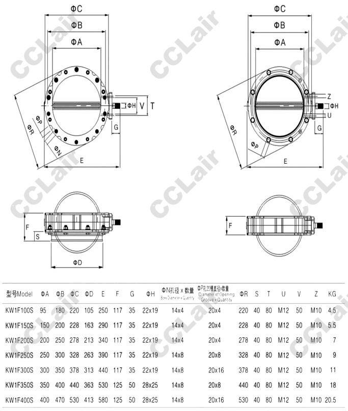 D641X氣動水泥蝶閥鋁合金板尺寸圖