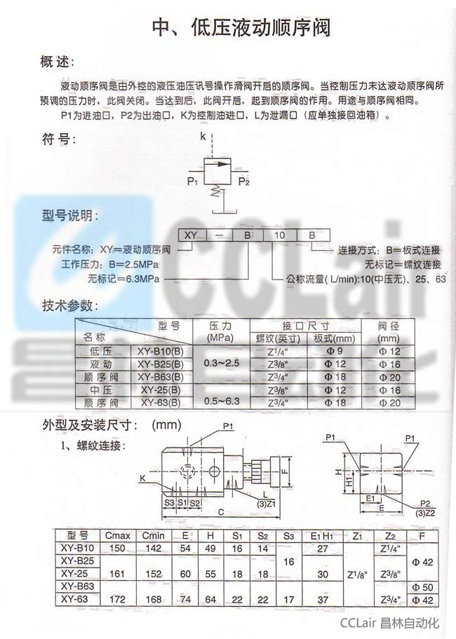 XY-B10,XY-B10B,XY-B25,XY-B25B,XY-B63,XY-B63B,XY-25,XY-25B,XY-63,XY-63B,液動(dòng)順序閥