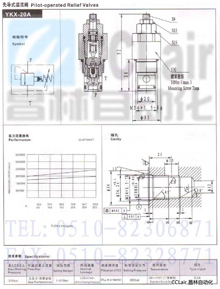 YKX-20A,先導(dǎo)式溢流閥