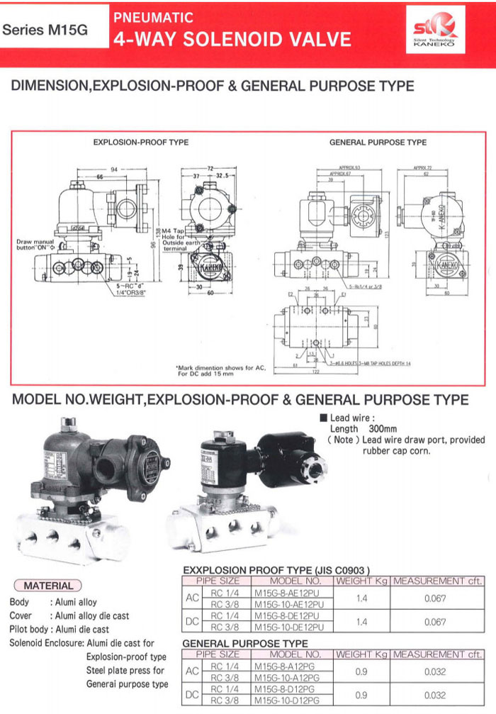 詳細(xì)信息 M15G-8-AE12PU,M15G-10-AE12PU,M15G-8-DE12PU,M15G-10-DE12PU,M15G-8-A12PG,M15G-10-A12PG,KANEKO氣動(dòng)4路電磁閥