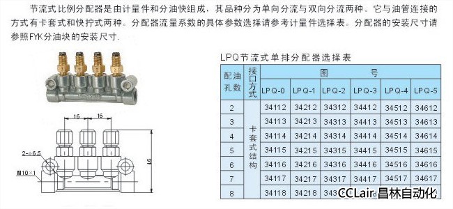 詳細(xì)信息 LPQ-0,LPQ-1,LPQ-2,LPQ-3,LPQ-4,LPQ-5,節(jié)流式單排分配器