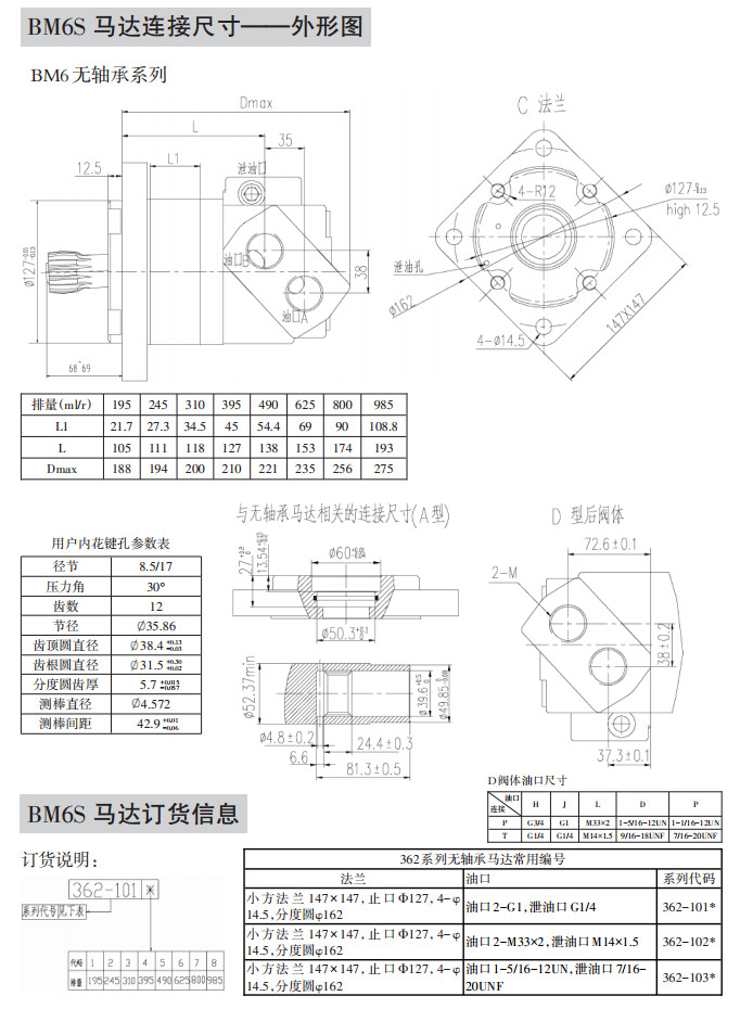 詳細信息 BM6S-195,BM6S-245,BM6S-310,BM6S-395,BM6S-490,BM6S-625,BM6S-800,BM6S-985,無軸承馬達