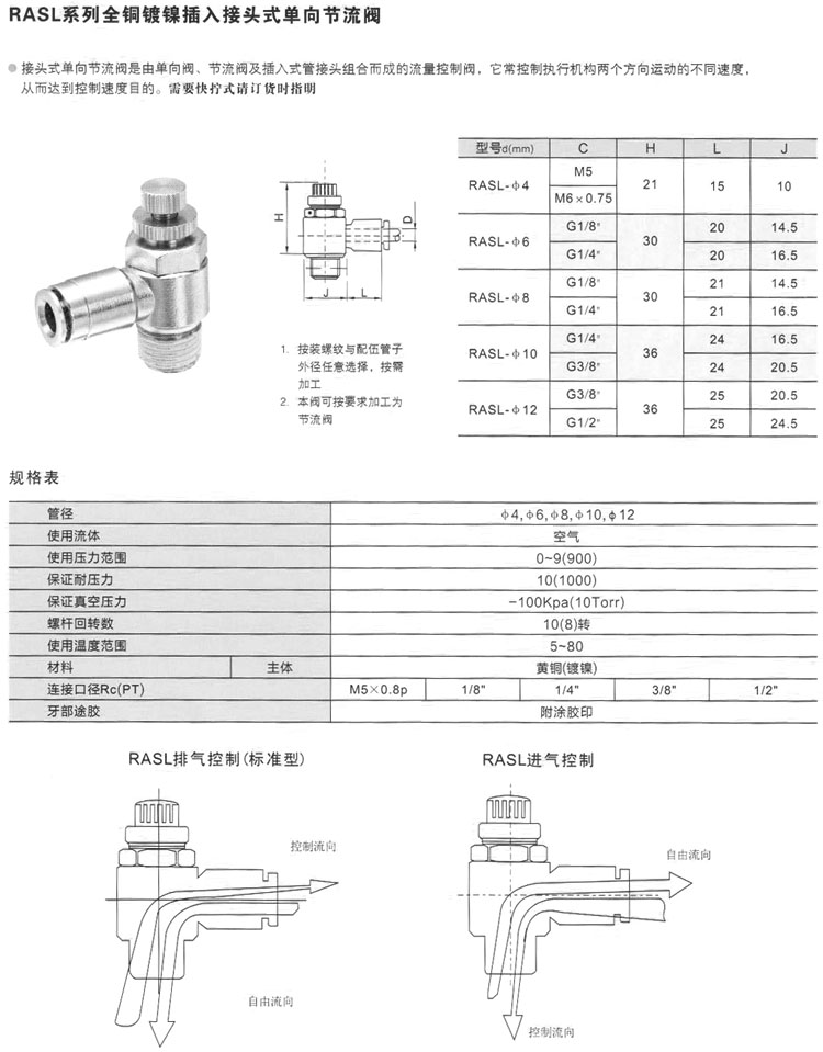 詳細信息 RASL-4,RASL-6,RASL-8,RASL-10,RASL-12,單向節(jié)流閥