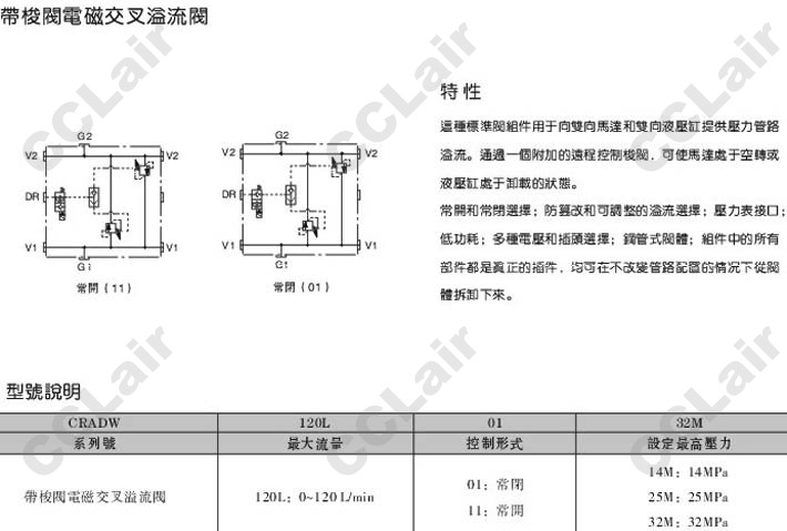 詳細信息 CRADW-120L-01-14M,CRADW-120L-11-14M,CRADW-120L-01-25M,CRADW-120L-01-32M,帶梭閥電磁交叉溢流閥