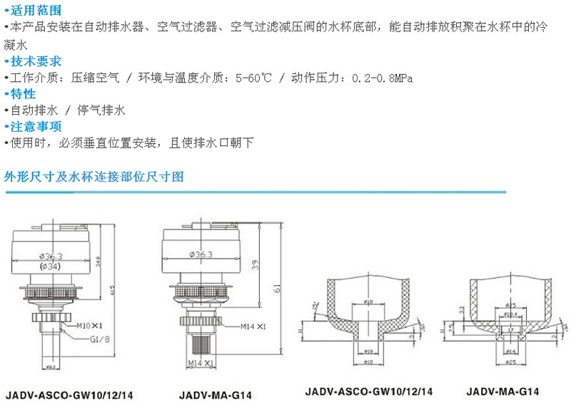 詳細(xì)信息 JADV-ASCO-GW10,JADV-ASCO-GW12,JADV-ASCO-GW14,自動(dòng)排水器