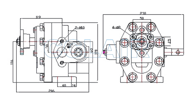 說明:本系列產(chǎn)品主要用于4-6噸自卸車的液壓系統(tǒng)中,作為傾斗油缸的液壓動力源,泵上裝有與泵體內(nèi)聯(lián)的操縱閥,可通過操縱桿控制車斗的舉升和降落.