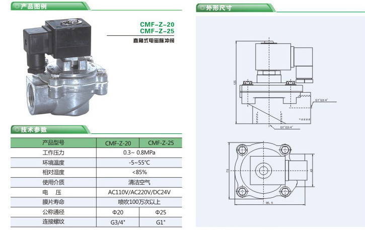 詳細信息 直角式脈沖閥CMF-Z-20,CMF-Z-25,CMF-Z-40S,CMF-Z-50S,CMF-Z-62S,CMF-Z-76S,